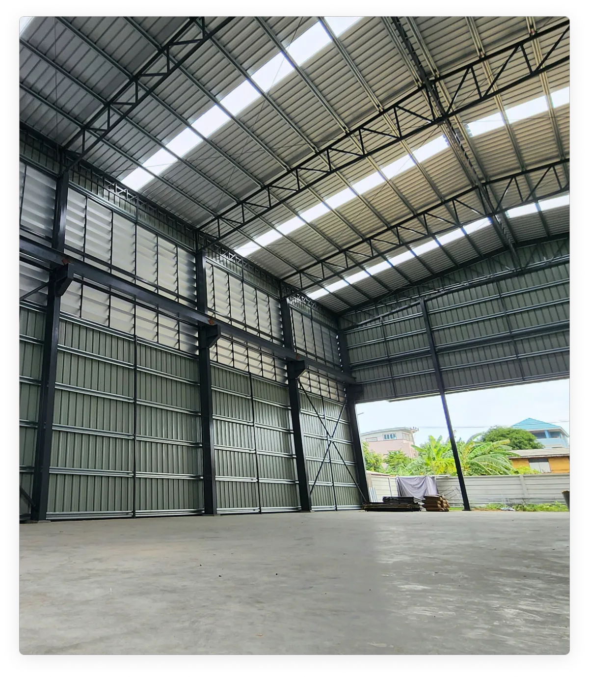 4–15 เมตร กว้างได้ถึง 40 เมตร รองรับการติดตั้งชั้นลอย เครน หรือปรับเปลี่ยนการใช้งานในอนาคตใช้งานได้ อเนกประสงค์ เหมาะทั้งสำหรับโรงงานและคลังสินค้า ขนาดกลางถึงใหญ่ ที่ต้องการโครงสร้างแข็งแรงแต่คุ้มค่า